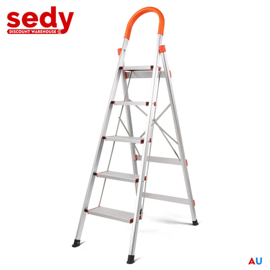 5 Step Ladder Multi-Purpose Folding Aluminium Non Slip Platform Household