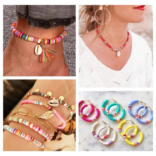 56 Colors 14420pcs 6mm Polymer Clay Beads Heishi Flat Round Clay Bead DIY Jewelry Making Kit