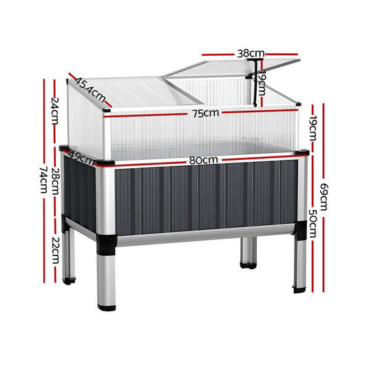 Green Fingers Raised Garden Bed x2 80x49x74cm Greenhouse Planter Box Galvanised Herb