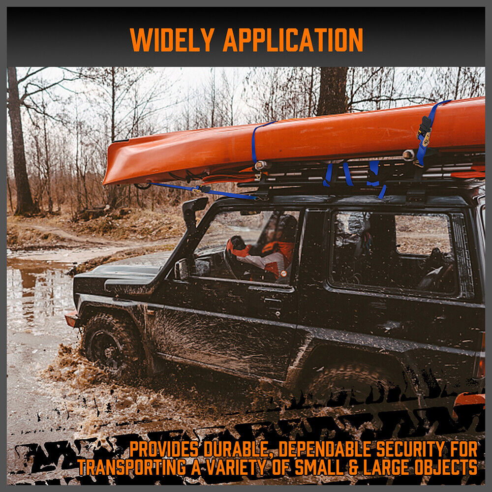 15-Foot Ratchet Belt Fastener Provides Durable, Reliable Security For Transporting a Variety of Items. Securely Fasten Motorcycles, Bicycles, Kayaks, UTVs, Boats, ATVs, Boxes, Boats, Coolers and Oher Cargo by Trailer or Roof Rack.