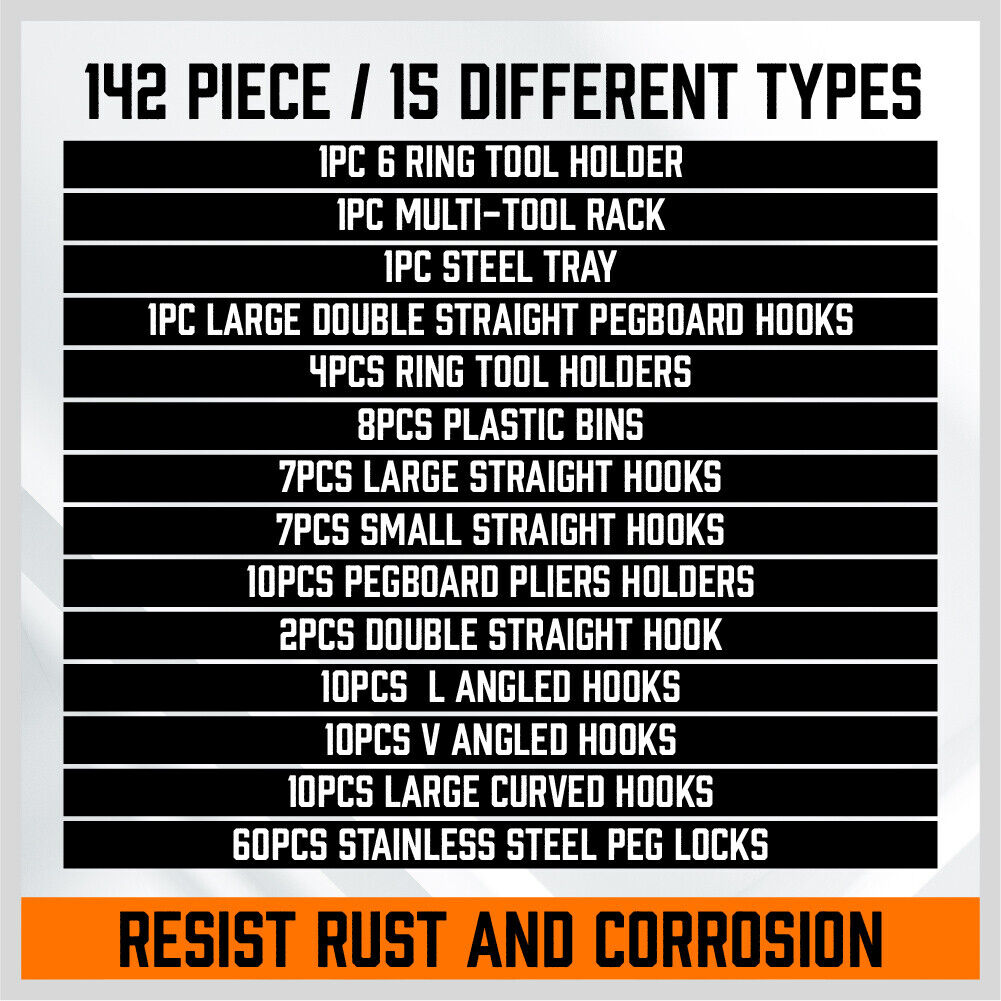 142Pc Pegboard Hooks Set Peg board Hanger Assortment Storage Trays Organizer Bin
