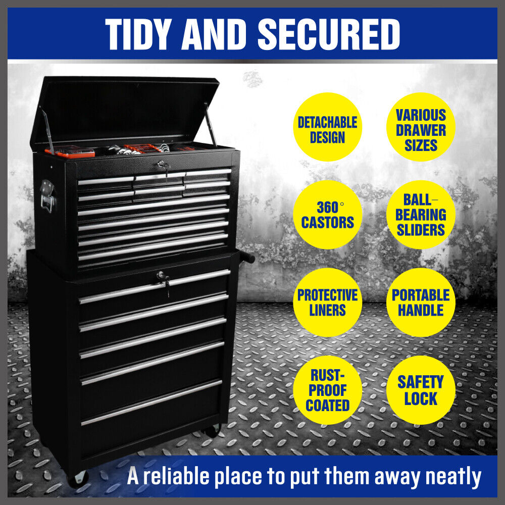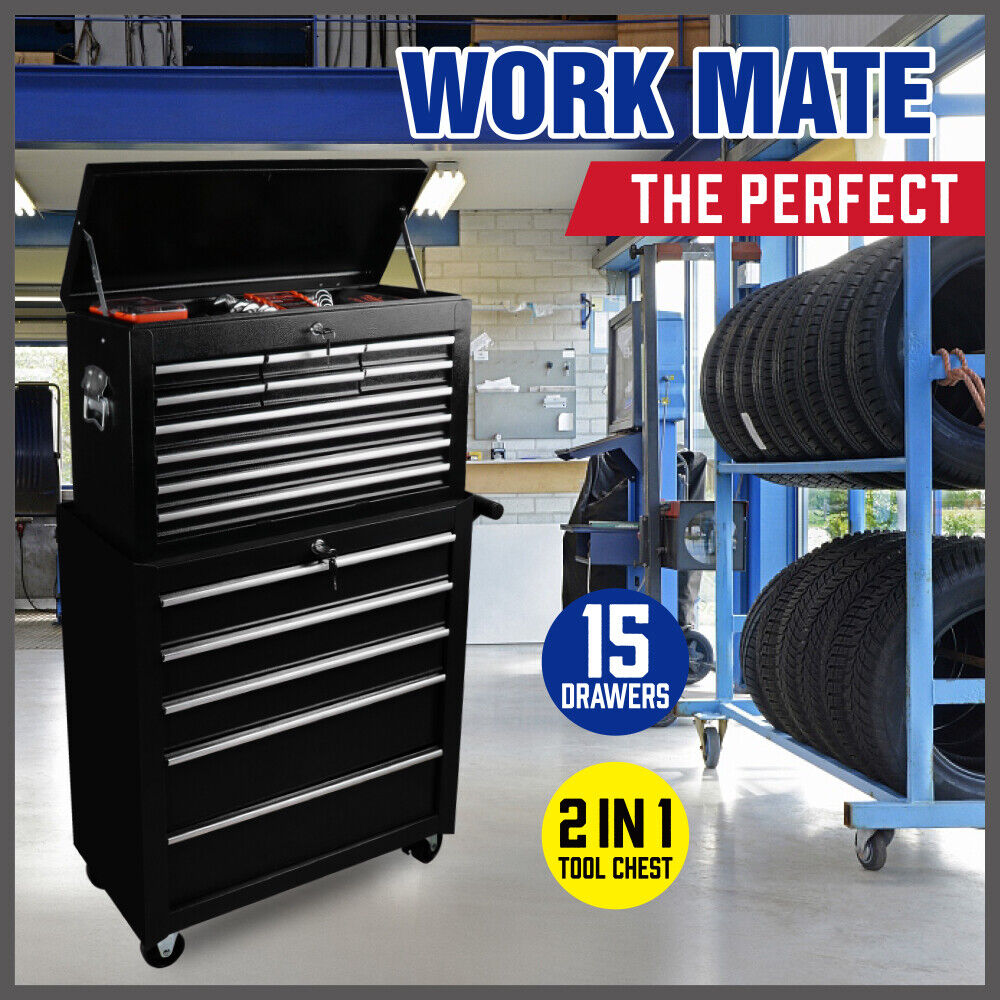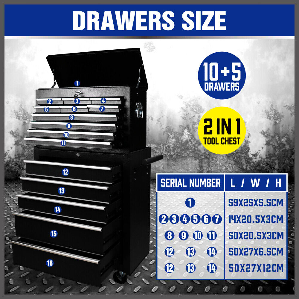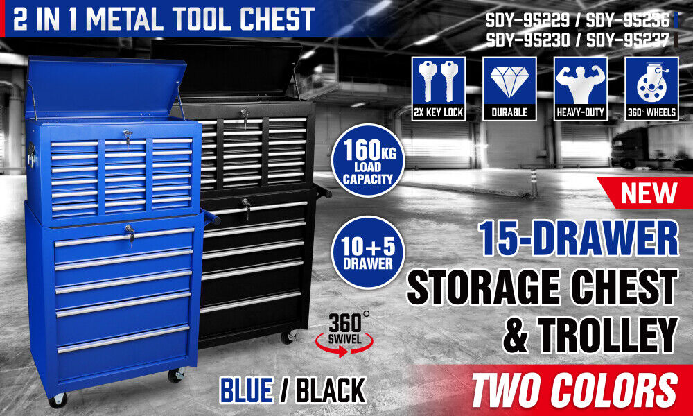 15-Drawer Tool Box Trolley Cabinet - Lockable Storage Cart Garage Toolbox Organizer System