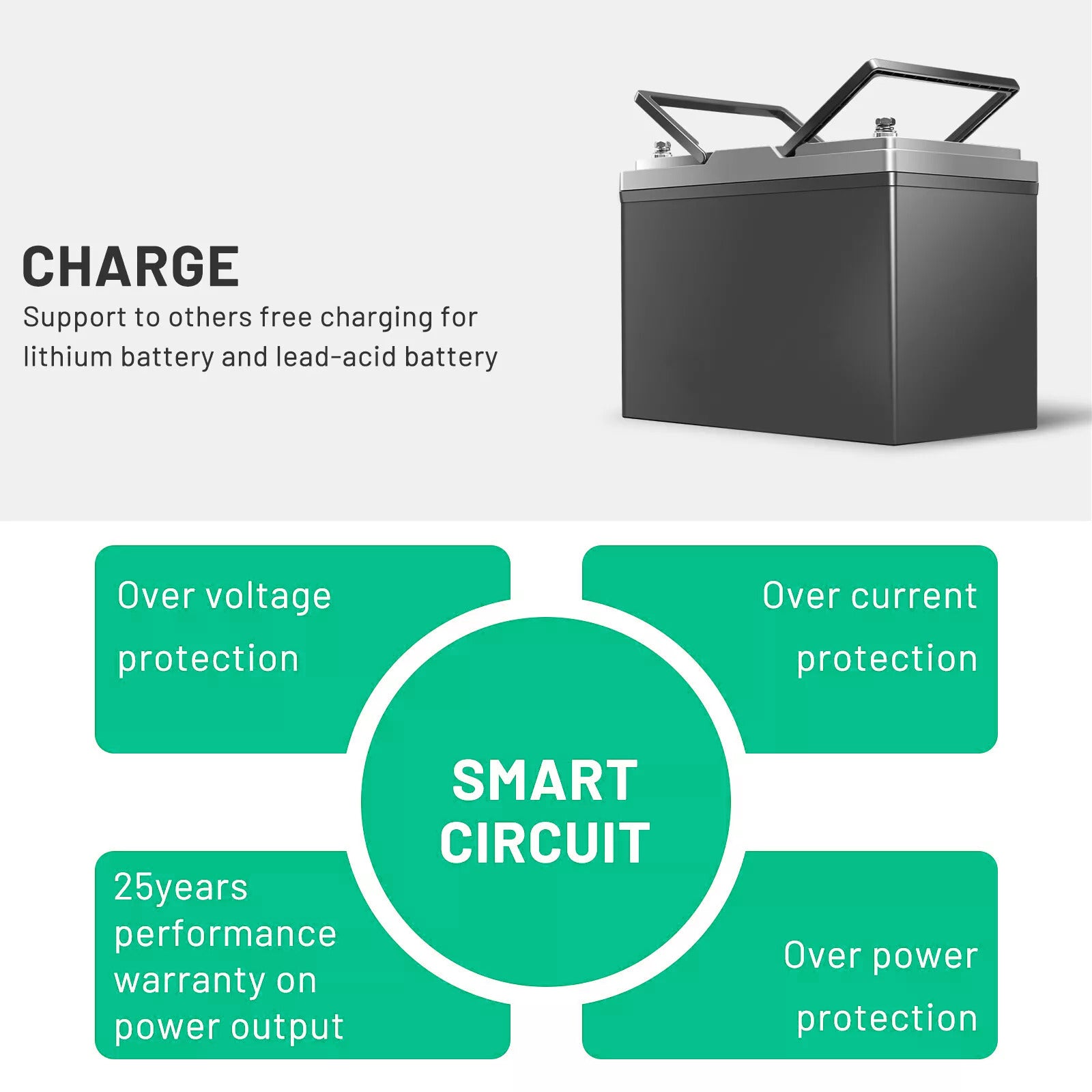 Compatible with Lithium LiFePO4, AGM.