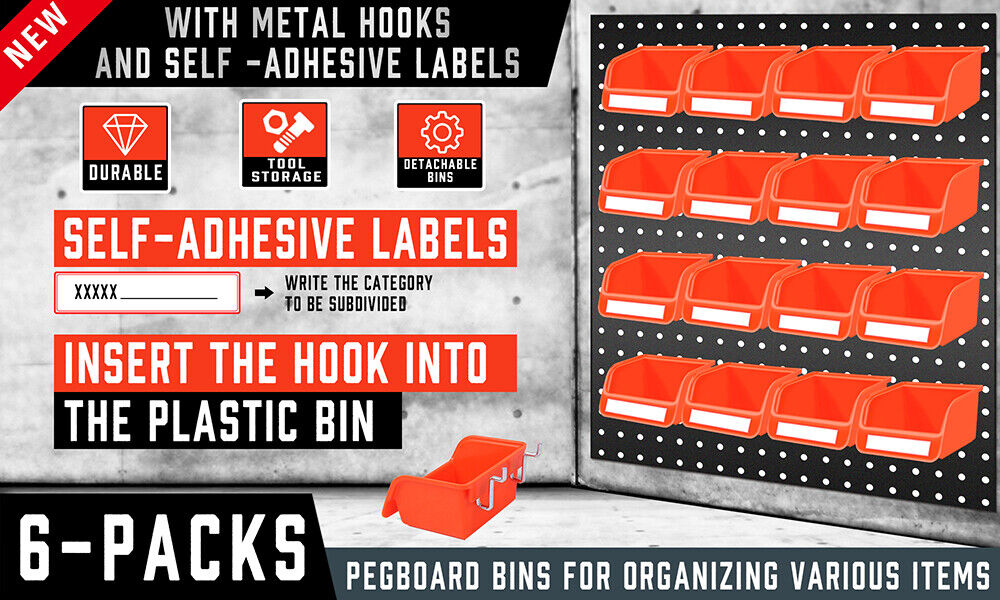 16Pc Pegboard Bins Peg Board Parts Storage With Steel Hooks Tools Organiser Tray
