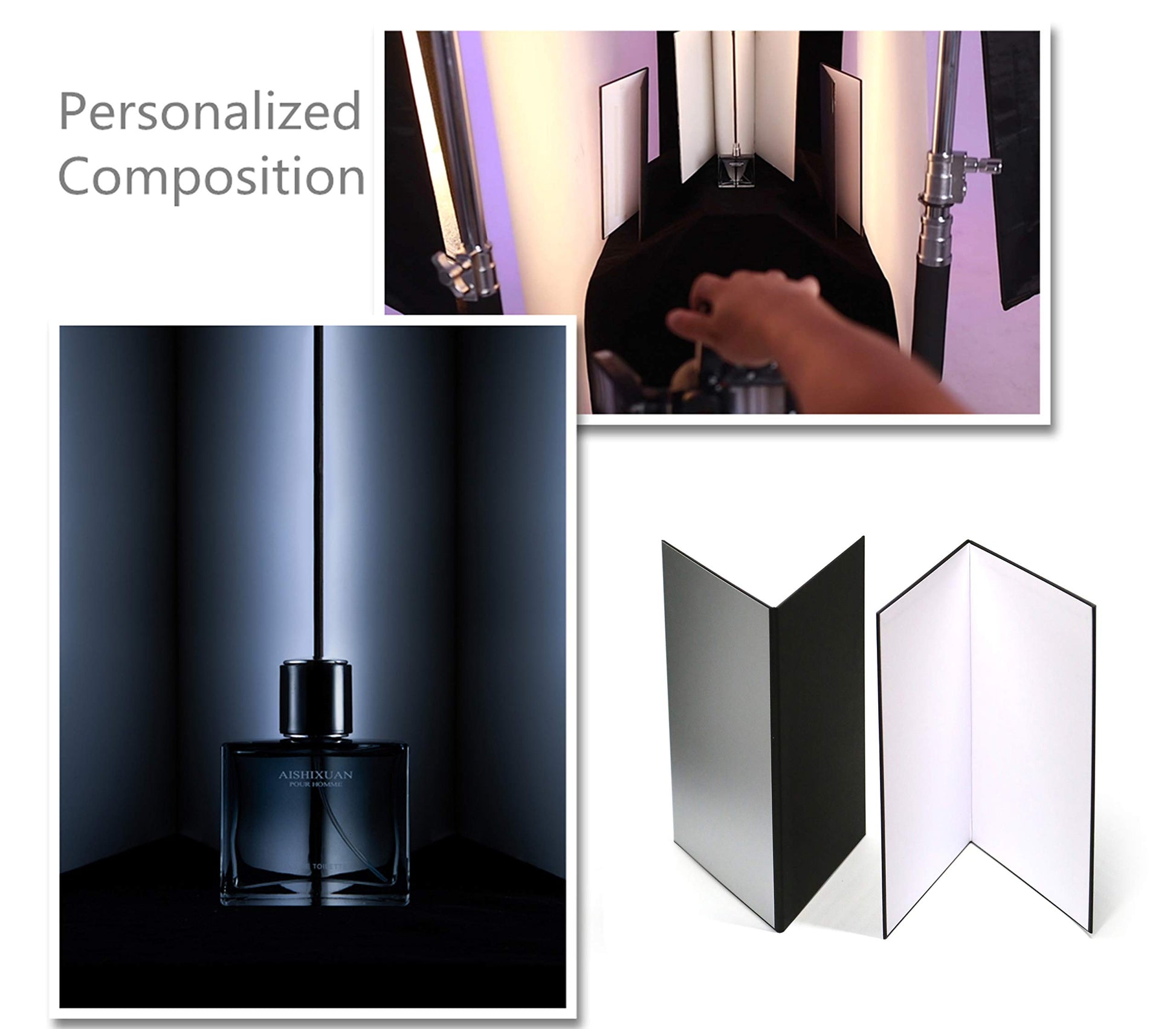 Application: Reflector Cardboard can be used as a reflector or as Specific composition background. In Jewelry photography, Cosmetics photography, Portrait, Food photography and still life photography in photo studios of glass or ceramic products can be well extraordinary performance.