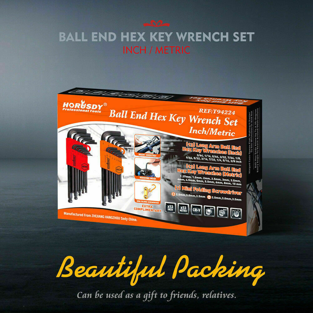 26Pack Allen Wrench Ball End Long Arm Hex Key Metric