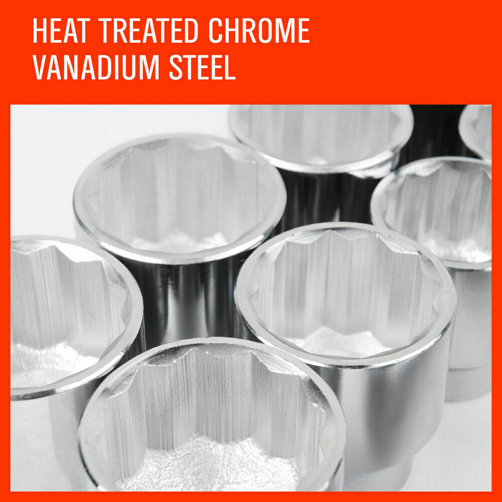 12 X Imperial Sockets: 7/8", 15/16", 1", 1-1/8", 1-3/16", 1-5/16", 1-3/8", 1-7/16", 1-5/8", 1-3/4", 1-7/8", 2"
