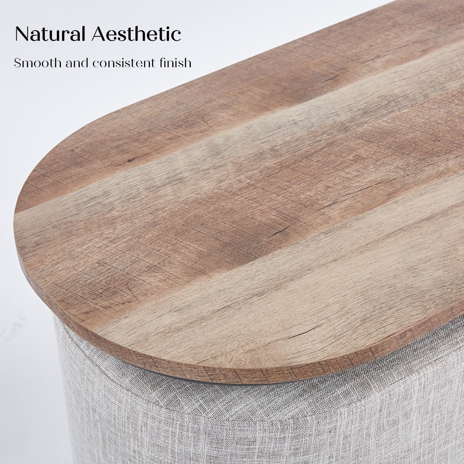 3 Piece Set Coffee Table & Ottoman Wood Side End Table Industrial - CREAM GREY