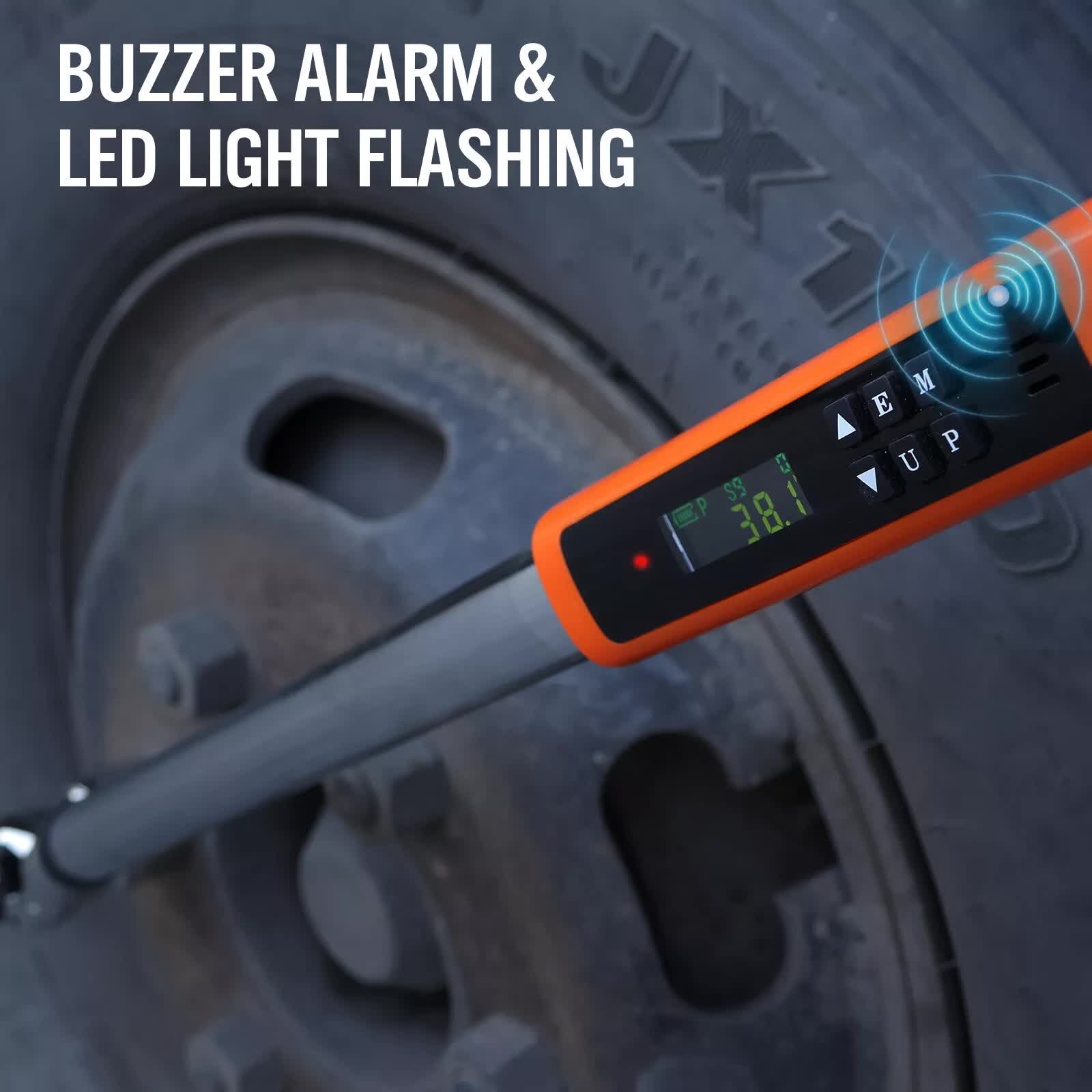 Constructed for Longevity: Constructed from robust chrome-vanadium steel, this heavy-duty torque wrench undergoes a rigorous six-stage heat-treated process and chrome-plated surface coating for optimal resistance to rust and corrosion. Additionally, the electronic torque wrench's smooth surface facilitates easy cleaning.