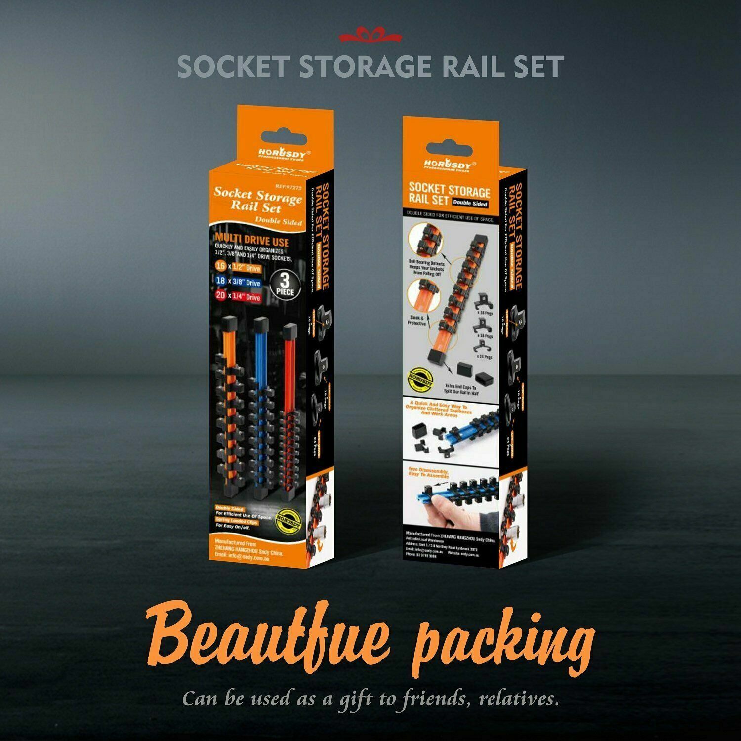3Pack Double-Side Sockets Holder Tool Organizer Rails WorkShop Rack 1/4"