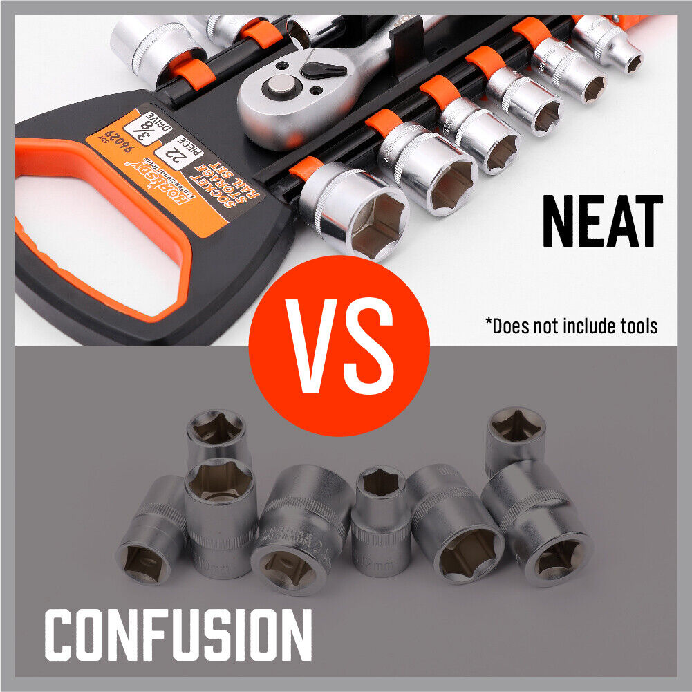 3Pc Socket Rails 66 Socket Holder Space Organiser Garage Rack 1/4" 3/8" 1/2"