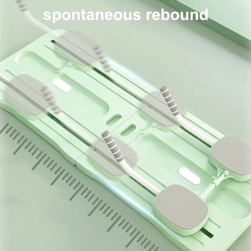 The NNETM 4-in-1 Pilates Board is a versatile fitness tool designed to enhance your home workout experience. It combines an ab roller, push-up bars, plank support, and resistance bands into one compact unit, offering a complete solution for strengthening your core, arms, legs, and glutes. The ergonomic design with foam elbow pads ensures comfort during long sessions, while the automatic rebound system allows for a fluid, dynamic workout.