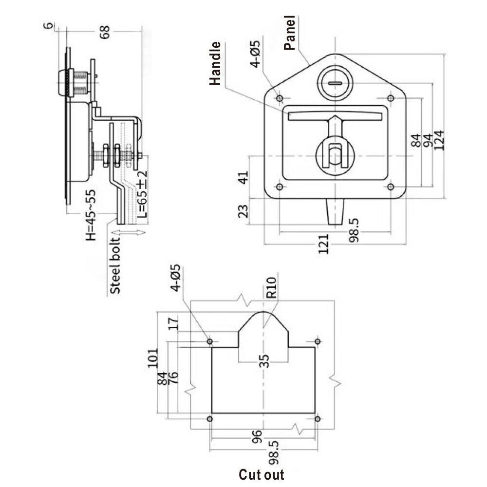 4-Piece T Handle Locks Tool Box With Keys Stainless Steel