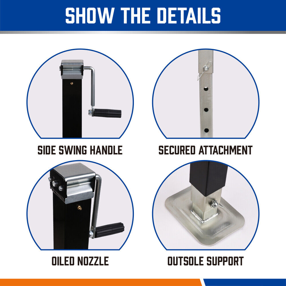The square jack dramatically improves side load strength. This weld on trailer jack is rated to handle 7,000 lbs. lift capacity.