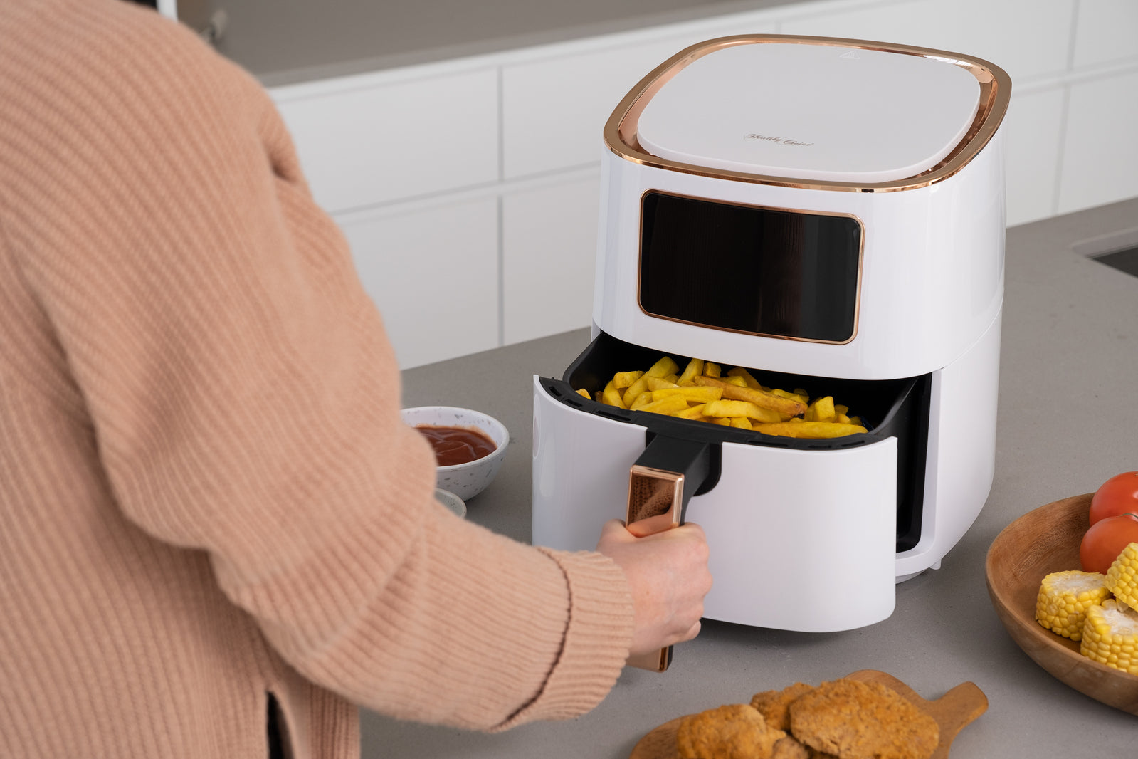 7L Digital Air Fryer (White Rose Gold) 1700W, <200°C, 8 Cooking Settings