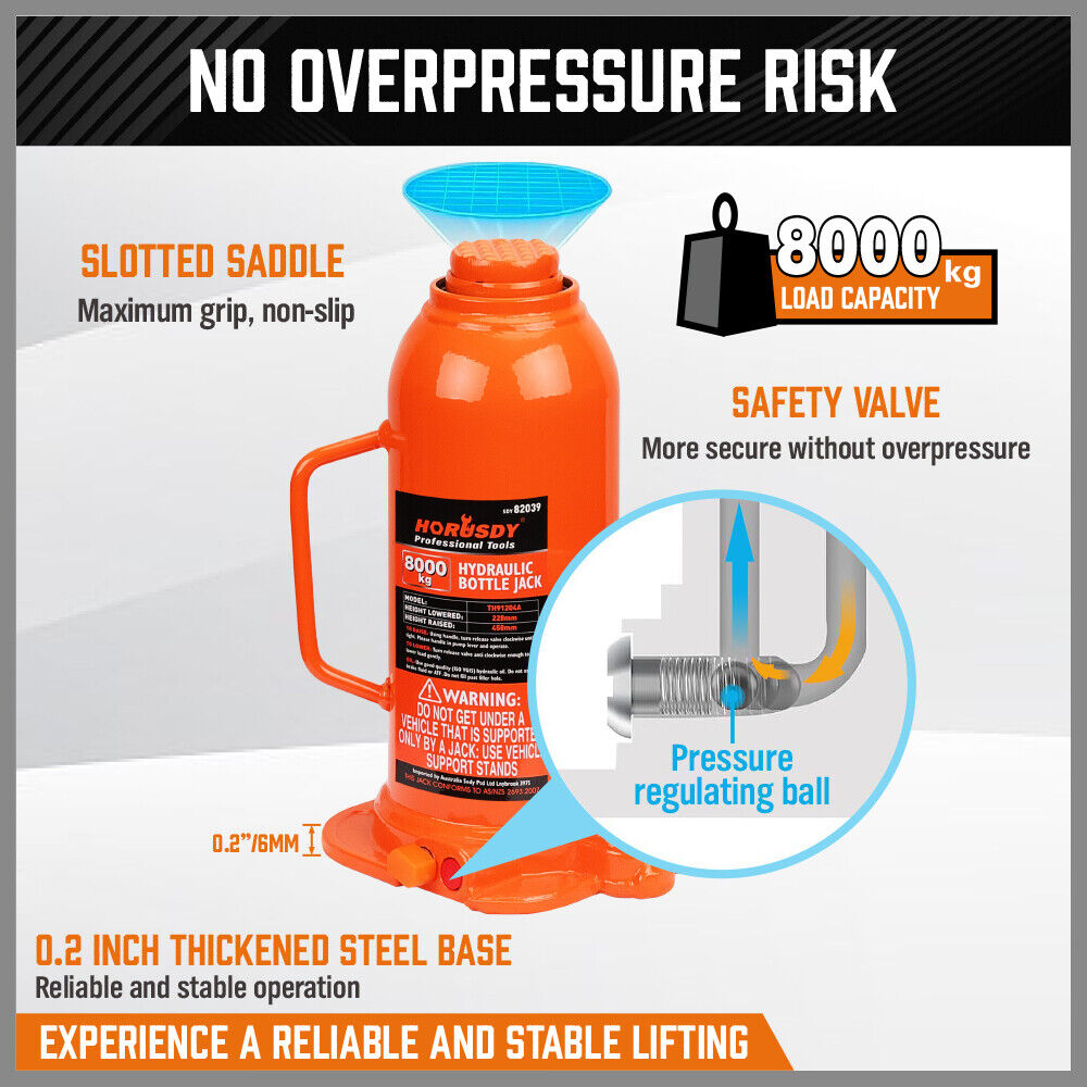8-Ton (16,000 LBs) Hydraulic Bottle Jack Heavy-Duty Car Lifter with