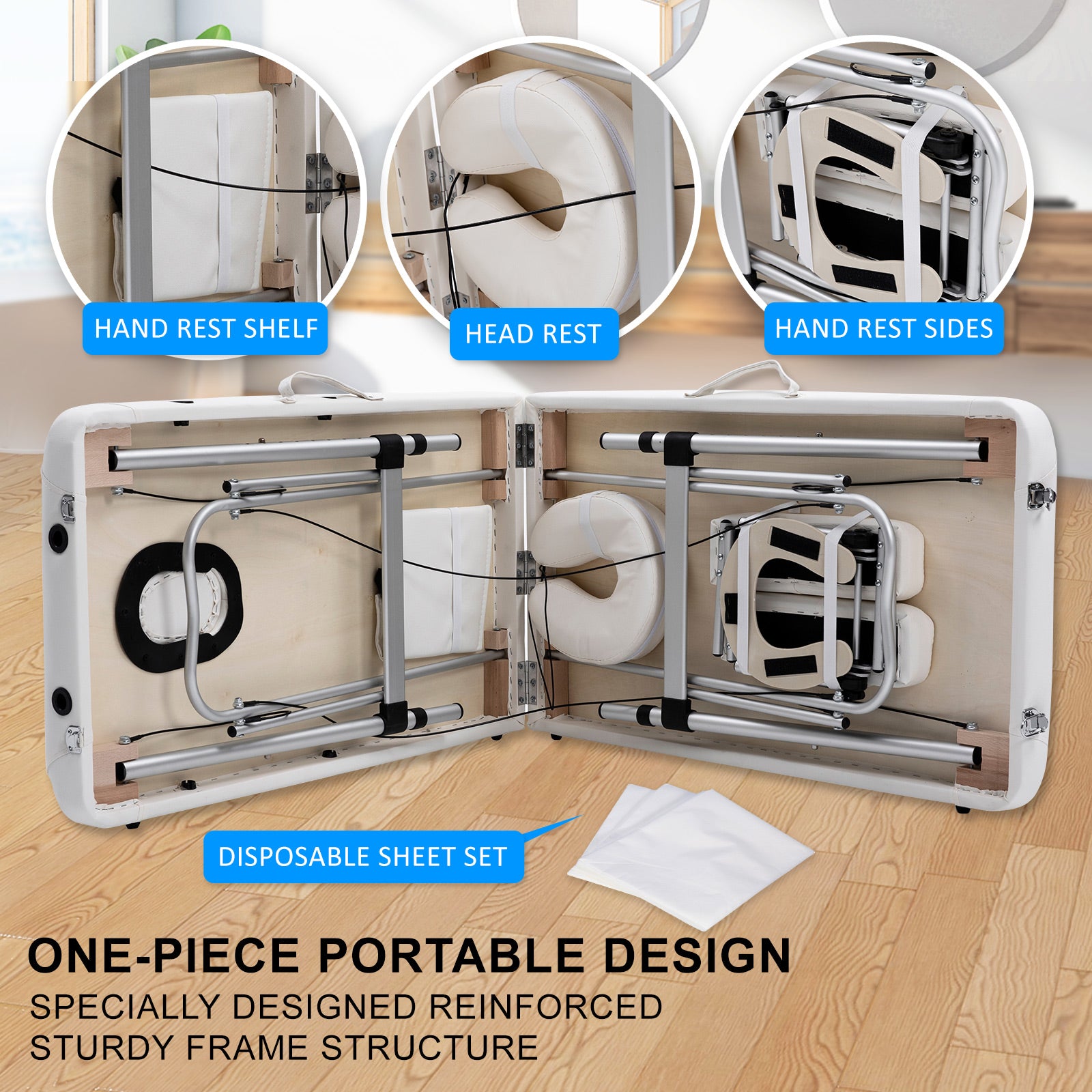 Aluminium Portable Beauty Massage Table Bed 2 Fold 55cm White