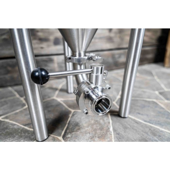 Pro-style welded 1.5 tri-clamp bottom dump makes dumping sediment and harvesting yeast a snap