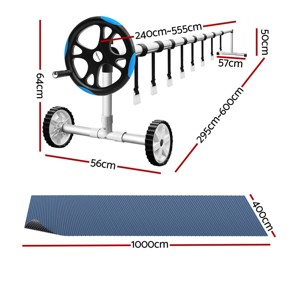 Aqua Buddy Pool Cover 600 Micron 10x4m w/ Roller 5.55m Black Solar Blanket