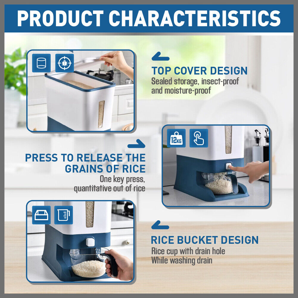 - COOKING – You want rice? Beans? Lentils? Flour? Do you really love them? Like 12kg worth of them. Your new dry food dispenser has you covered. Store a lot of rice, flour, or other dry ingredients.