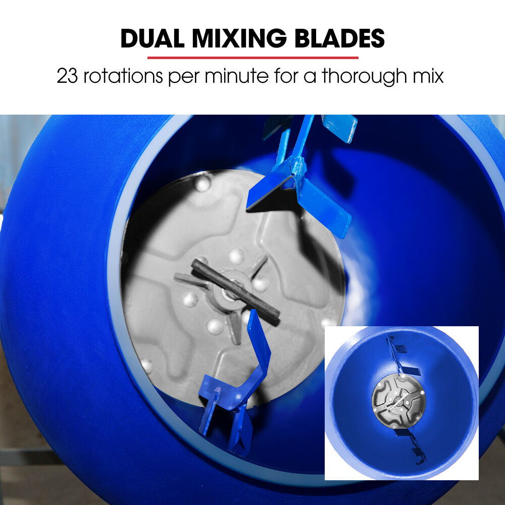 The tough, rust-proof poly drum resists dents, cracks, and corrosion, while being far easier to clean than traditional metal alternatives. With a 100L capacity, it's ideal for concrete, mortar, and other heavy materials.