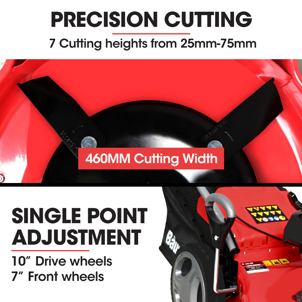 BAUMR-AG 18" 150cc Self Propelled Lawn Mower, 7 Height, Steel Deck, Cup Holders, 4-Stroke Petrol Lawnmower - 740SX