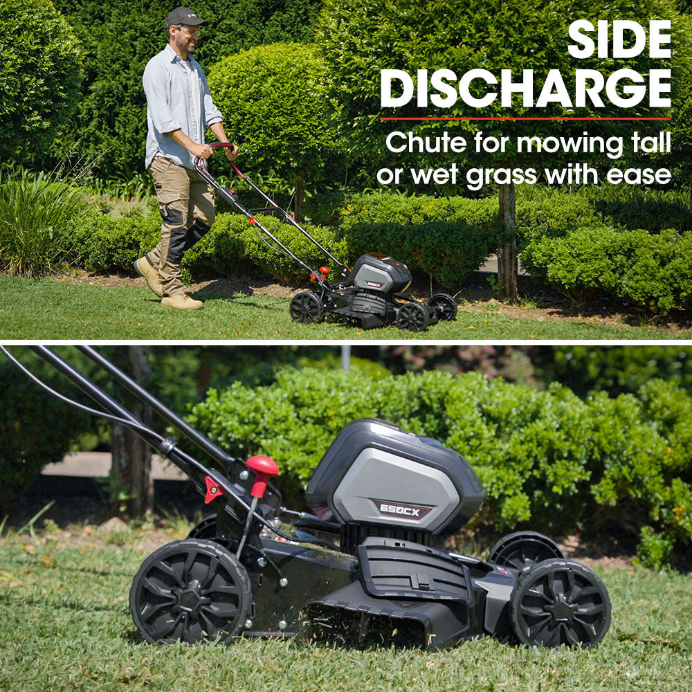Baumr-AG continues to deliver innovative gardening tools with this addition to the cordless lithium SYNC Ultra range – the 19” 40V Brushless 650CX Net Zero series Lawn Mower. With no mess, fumes, or fuelling up it's so easy to maintain a lawn that you'll be proud of. And, with a steel deck, an impressive 460mm cutting width and mulching function, this is certainly not your average battery powered mower!