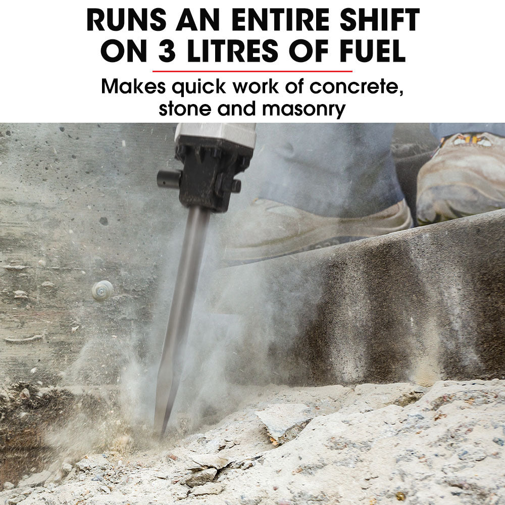 Introducing the Baumr-AG JP260 52CC Two-Stroke Jackhammer, the ultimate in portable power. Featuring our 52cc 2-Stroke engine with E-Z Pull recoil start this lightweight powerful engine produces 2.5 HP enough to take on any demolition job.
