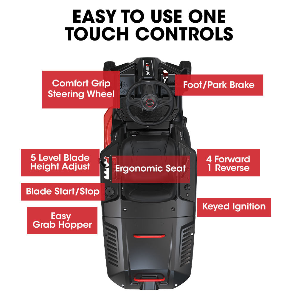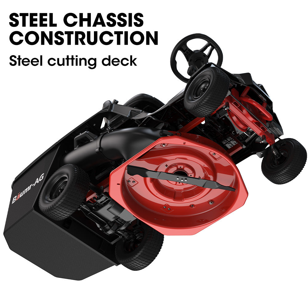 BAUMR-AG 24" Ride On Lawn Mower, Lithium Electric Start System, 6HP 224cc, 5 Cut Heights, Catcher and Mulch Kit