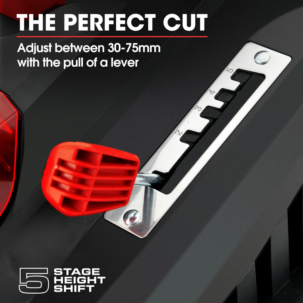 With five cutting height settings, you can achieve the perfect lawn, whether tackling overgrown grass or maintaining a fine finish. The generous 52L catcher reduces the need for frequent emptying, while the included mulch plug allows you to return fine clippings to your lawn for a healthier, greener result.
