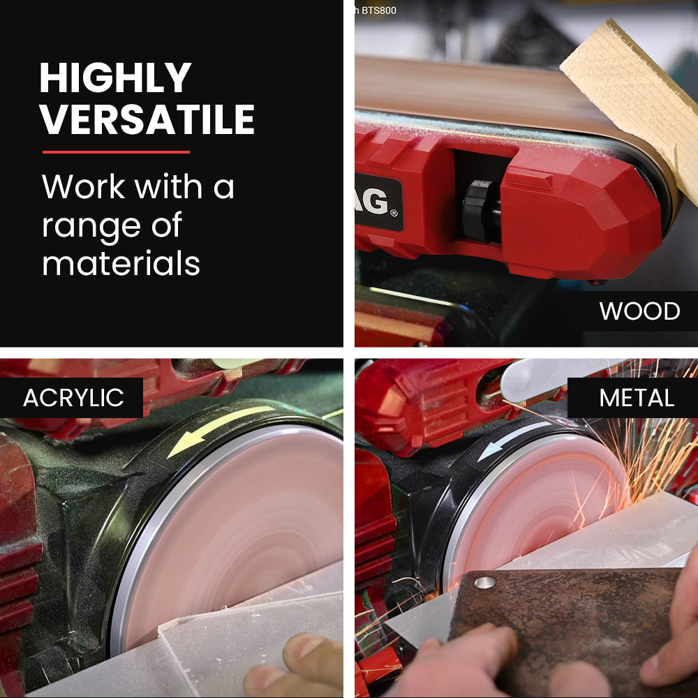 With a potent 400W motor, the BSS-55 is engineered to tackle your projects with ease. Being rated as an S1 continuous duty motor, you can rest assured you can effectively sand for as long as you need across various materials, including wood, acrylic and metal.