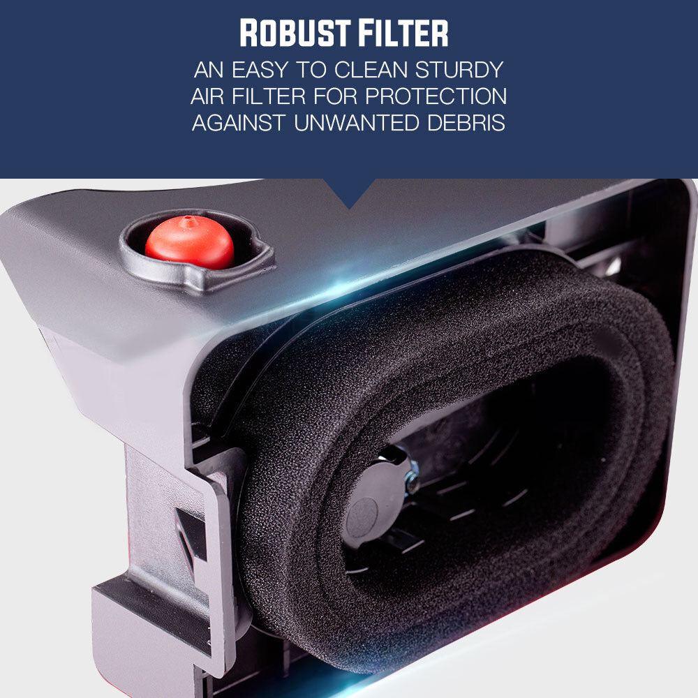 The 780SX lawn mower boasts high quality components which includes advanced four-stroke OHV technology that blends a high power output with easy starting and efficiency. The large and effortlessly powerful air cooled 220cc engine slices through the toughest buffalo with ease.