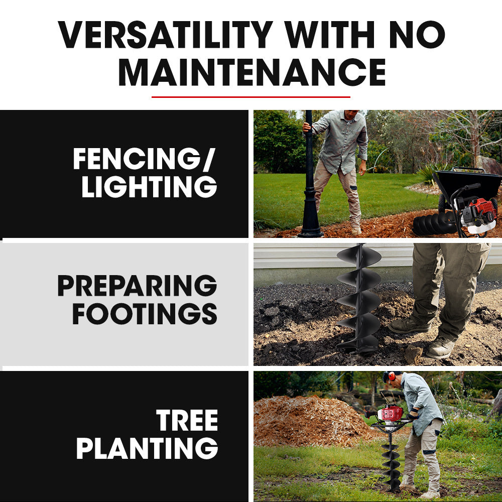 BAUMR-AG Petrol Post Hole Digger, Safety Brake, 150mm+200mm Double Helix Earth Auger Bits