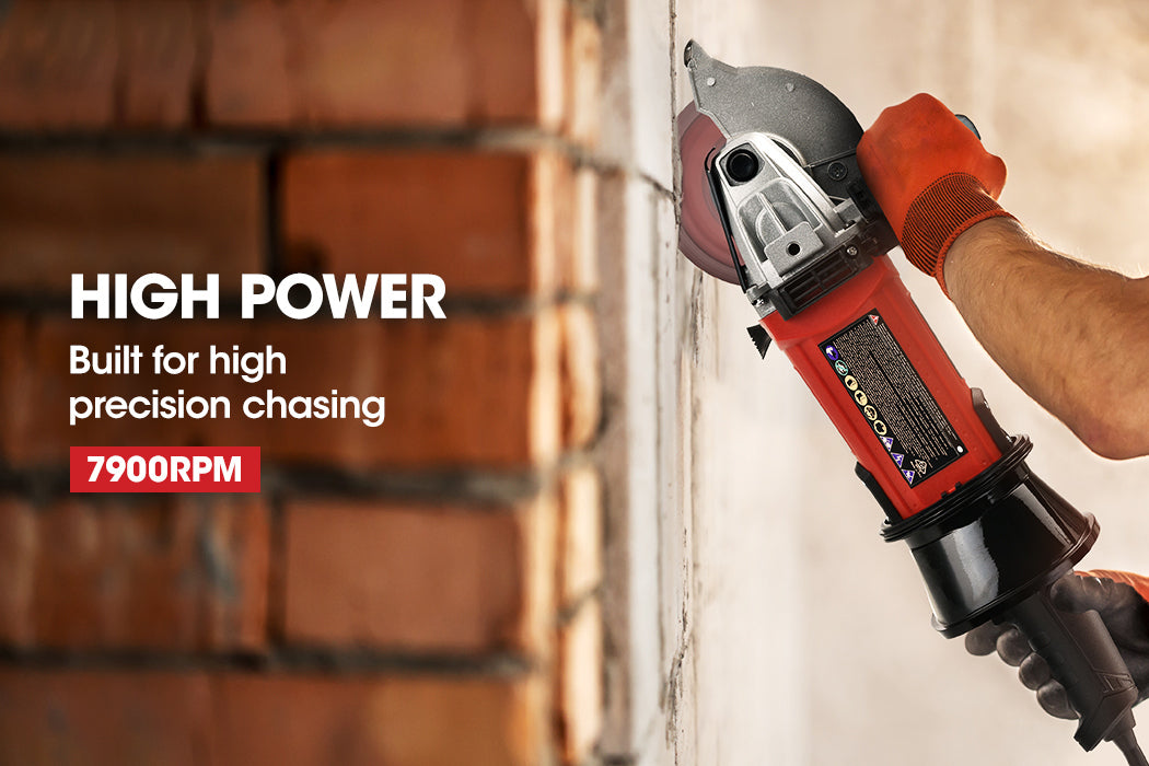 The wall chaser is equipped with a powerful heavy-duty 1700W motor that efficiently chase 41mm deep channels through tough concrete, brickwork and besser blocks at 7900rpm.