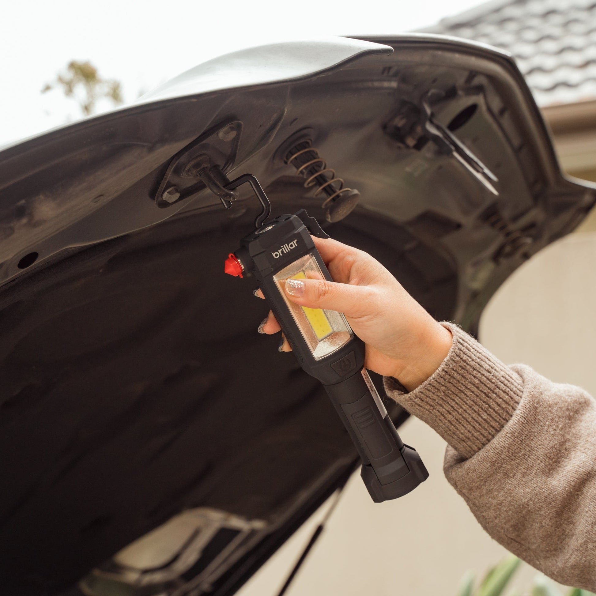 The COB LED Multi-Purpose Emergency Torch is a handy device to keep in the home, car or office. With 200 lumens of super bright light, with a torch at the top, a bright COB LED and flashing red light, it also features a magnetic stand, 270 degree pivoting base, a seatbelt cutter and glass breaker. It is the ideal torch to have in case of emergencies.