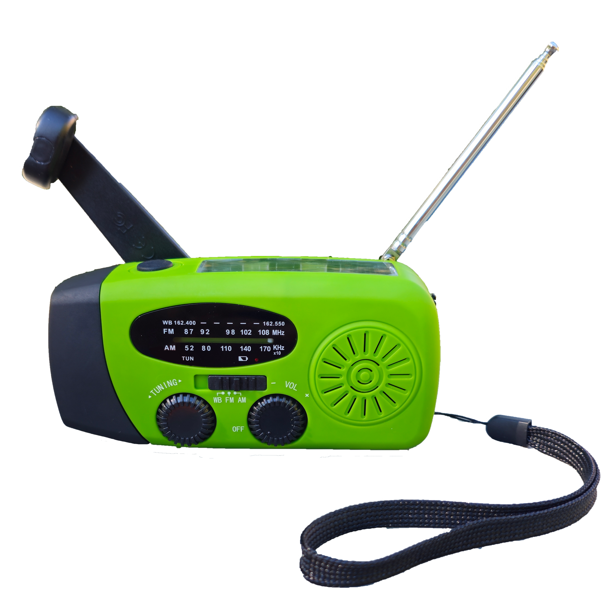 - Hand Crank Radio Emergency Battery Pack with Torch and Solar Panel (USB-A, USB-C)