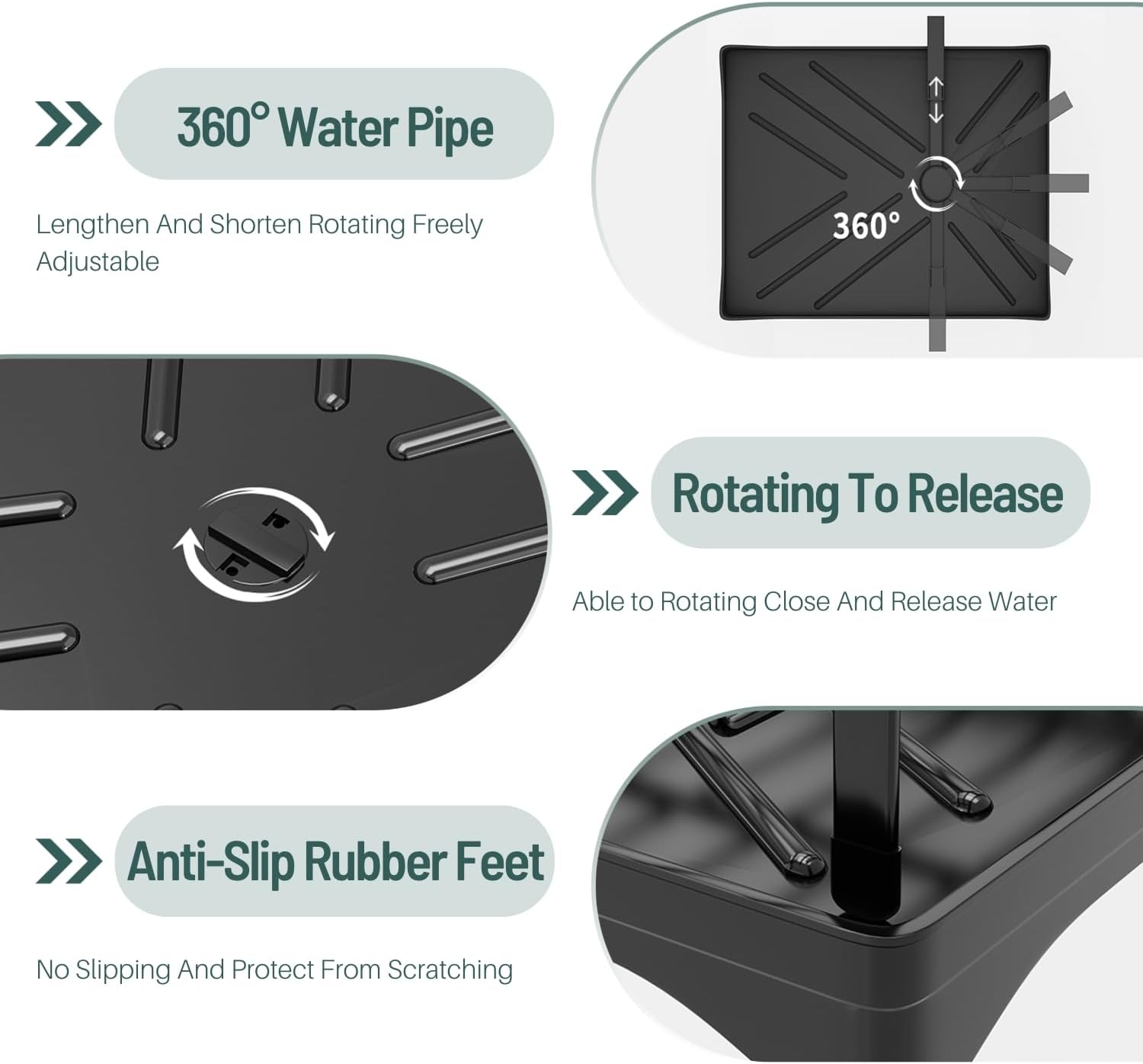 - BUILT-IN DRAINBOARD WITH SWIVEL SPOUT: Includes an auto-drain tray and 360° rotating spout to channel excess water directly into the sink, keeping your kitchen counter clean and dry at all times.