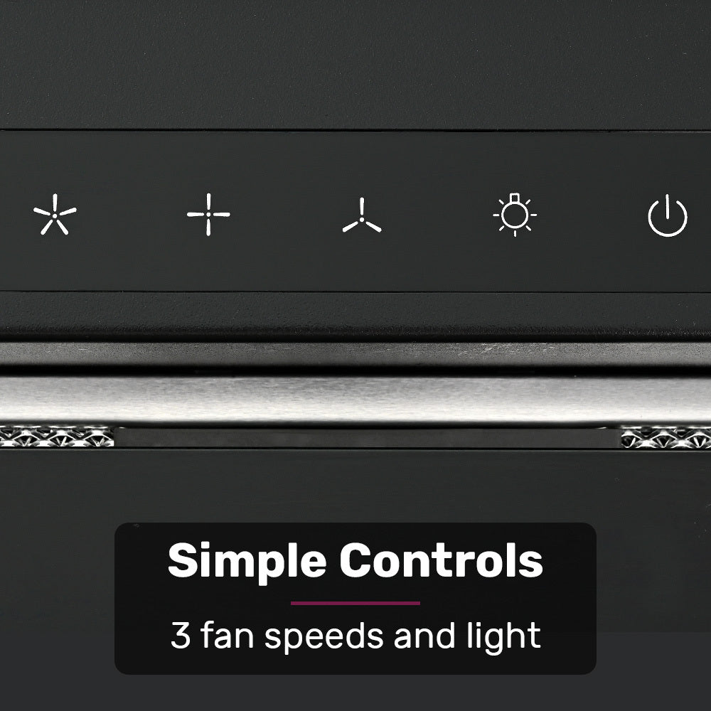 The EuroChef Undermount Rangehood seamlessly blends into your kitchen with its sleek, discreet design. Crafted with a beautiful powder-coated black frame and glass, it’s built to last, while the 124W motor and 500m³/h airflow efficiently clear smoke and odours.