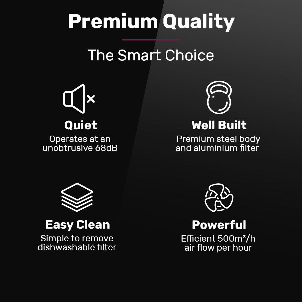 Running at just 68dBa, it remains quiet, even at top speed. The simple three-speed push button control allows for quick adjustments, and the three-layer aluminium filters are both removable and dishwashable for hassle-free maintenance.