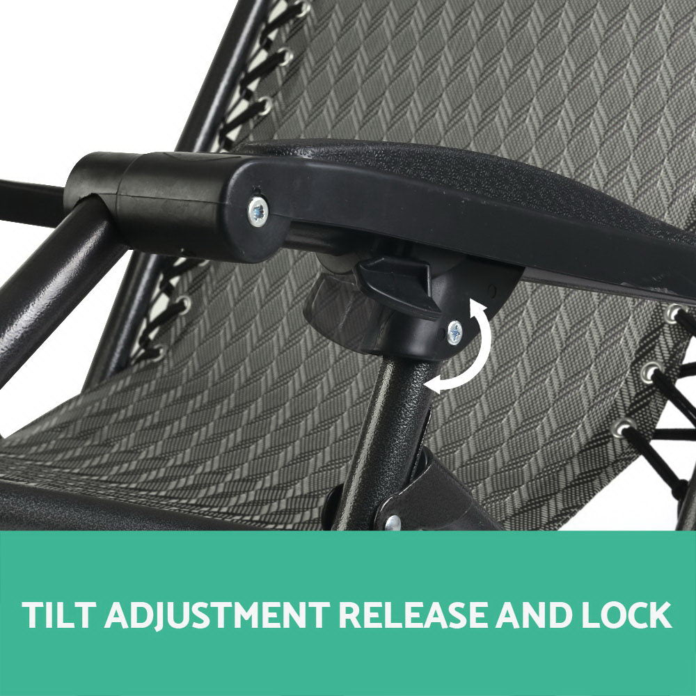 2PC Zero Gravity Chair Folding Outdoor Recliner Adjustable Sun Lounge Camping Grey