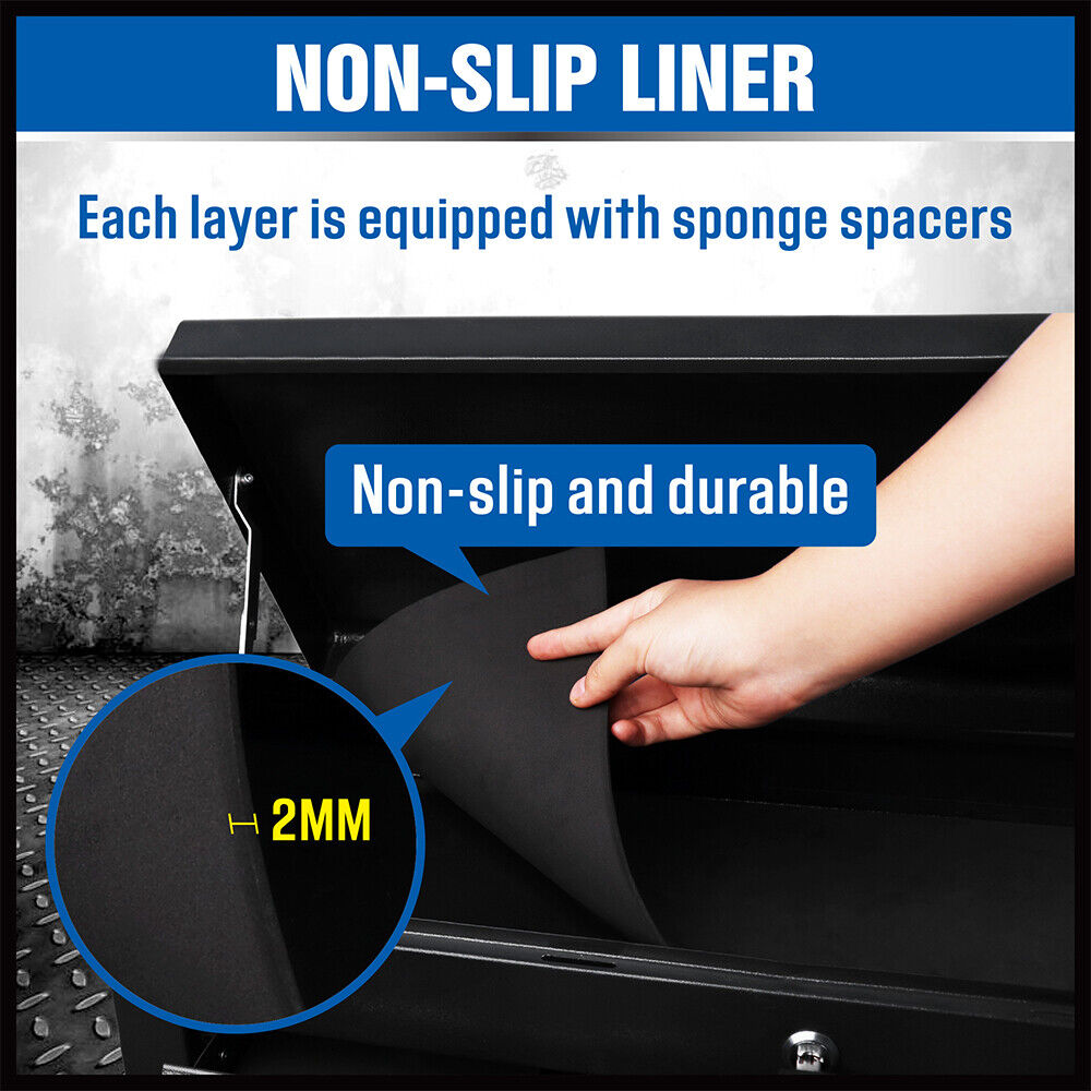- Non-slip drawer liners to prevent the tools from rolling when opening the drawer