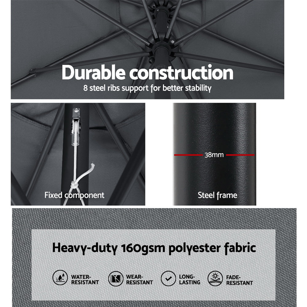 Instahut 3m Outdoor Umbrella Beach Pole Garden Patio Tilt Charcoal