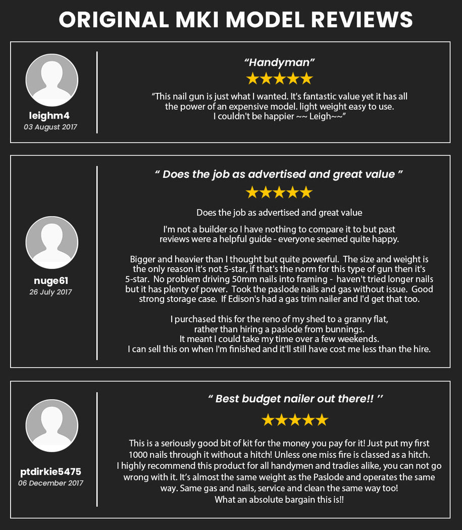 The NEW UNIMAC LXG3000 MkII Gas Framing Nailer has landed and has already asserted itself among the most highly acclaimed models on the market. A must have for any tradesmen, builder, handyman or serious DIYer, this class leading commercial grade nailer is designed and engineered to uncontested quality standards for greater reliability and improved durability.