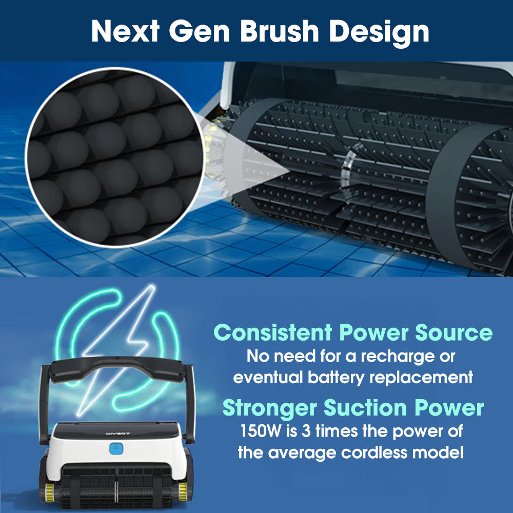 WYBOT Grampus 800 Robotic Pool Cleaner, Automatic Vacuum with Quick Clean, Wall Climbing Capability, Powerful Triple Motors, Large Filter Baskets, Ideal for Large In-Ground Pools